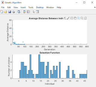 lalu pada commend window ketikan optimtool ga nanti akan masuk ke optimization Toollalu pada solver kita ubah menjadi Multiobjective optimiation using genetic algorithmisi fitness function dengan @GAlalu karena kita memiliki 3 variabel isi number of variables = 3lalu pad bounfs :Lower kita isi sesuai dengan fungsi kendala tadi : [10 10 10]Upper kita isi sesuai dengan fungsi kendala tadi : [85 80 70] lalu kita start dulu untuk mengetes programnya jalan atau tidakPopulation : 100Selection Function : Tournament Mutation Function : uniformcrossover function : Intermediatepada plot function centang distance dan selectionlalu kita tekan lagi tombol start yang tadiberikut adalah hasilnya